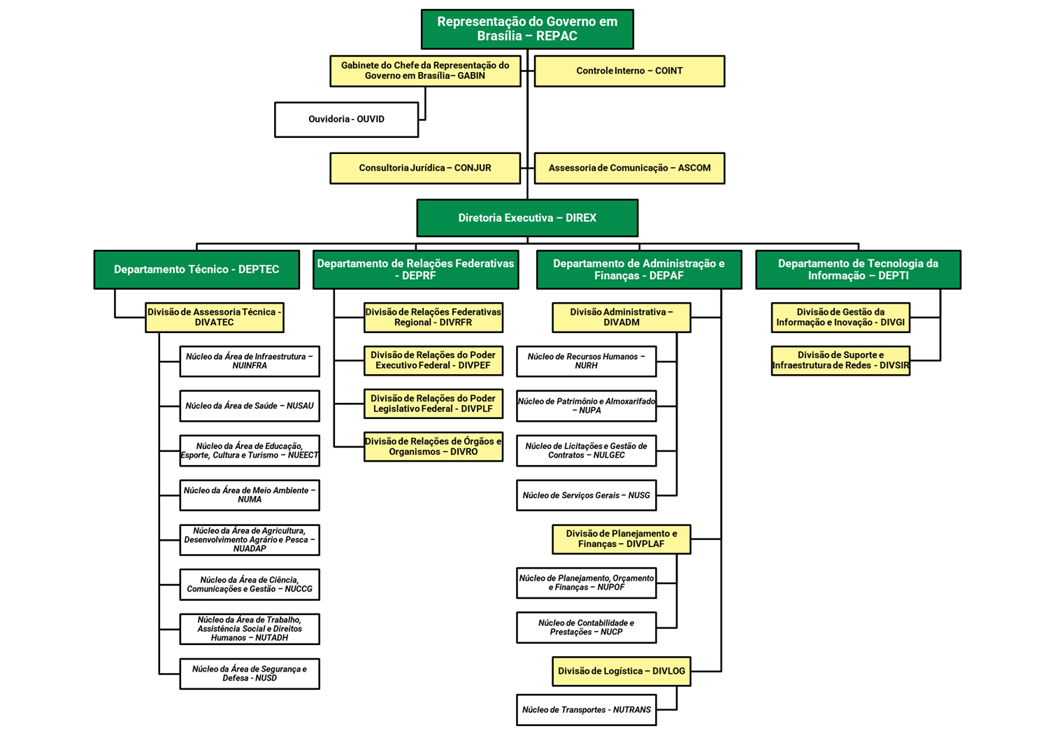 Estabelece a estrutura organizacional básica da Representação do Governo em Brasília – REPAC.